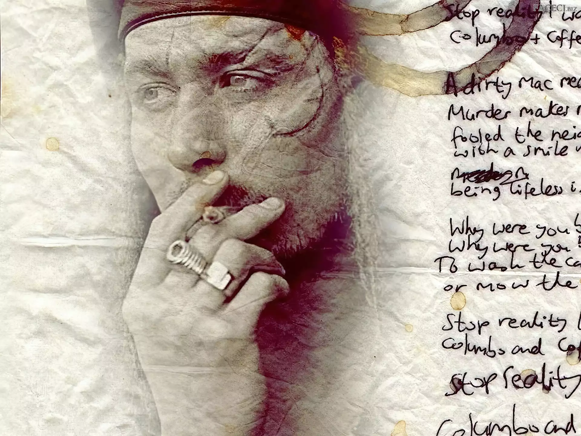 muszka, Gary Oldman, ręka romeo is bleeding, Gary Oldman kapelusz, Gary Oldman, długie włosy twarze, Gary Oldman, okulary sygnet, Gary Oldman, okulary pistolet, Gary Oldman, jasny garnitur papieros, Gary Oldman, okulary czarne spodnie, Gary Oldman, blond włosy czerwone usta, Gary Oldman, pocałunek niebieskie oczy, Gary Oldman papieros, Gary Oldman, romeo is smoking czapka, Gary Oldman, ciemny strój twarze, Gary Oldman bródka, Gary Oldman, koszula